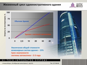 - стоимость эксплуатации автоматизированного здания в течение срока его службы (20-30 лет) в 2,5 раза меньше, чем неавтоматизированного;